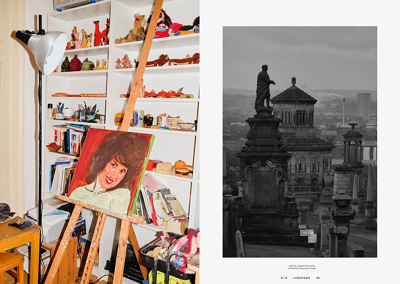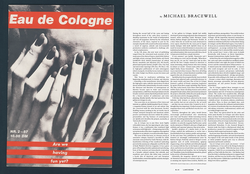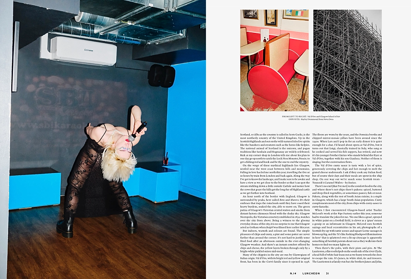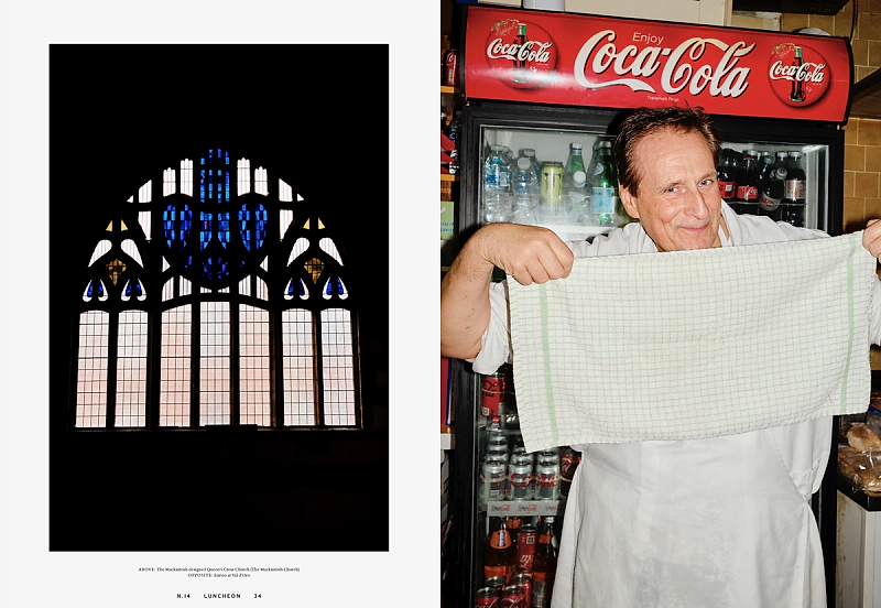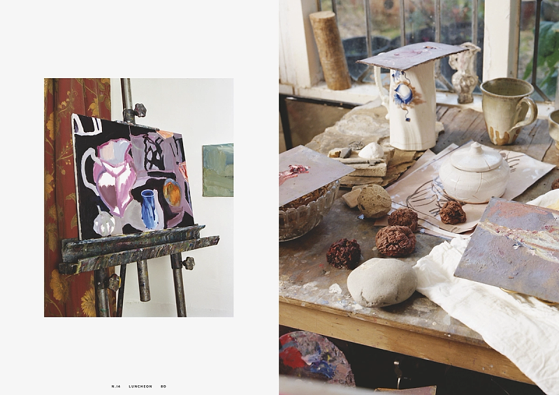 Throughout Luncheon N.14 runs Cigarette Breaks, new works contributed by Cary Kwok, Michael Lindsay-Hogg, Rottingdean Bazaar, Alfie Benge and Robert Wyatt. In Chips, Cheese and Curry Sauce, Josefine Skomars and Lars Brønseth travels to Glasgow. Seven works by artist Pablo Bronstein. A conversation between architect Sumayya Vally and fashion designer Roksanda Ilinčić, with photographs by Chieska Fortune Smith. Charlie Porter introduces The Work of Pat Porter, accompanied by photographs by Kuba Ryniewicz and words by Olivia Laing. Eau de Cologne by Michael Bracewell revisits the collaborative legacy of Monika Sprüth and Rosemarie Trockel. A poetic conversation between Mustafa the Poet and Adrian Joffe, while artist Tai Shani shares a selection of personal inspirations. The issue also includes Fawley Bottom, on John and Myfanwy Piper by Tom Hanbury; Body morphing and clothing by Michaela Stark, photographed by Jack Davison and La Sarabande with Ballet national de Marseille (La) Horde, photographed by Louie Banks and styled by Ally Macrae.