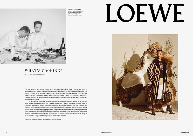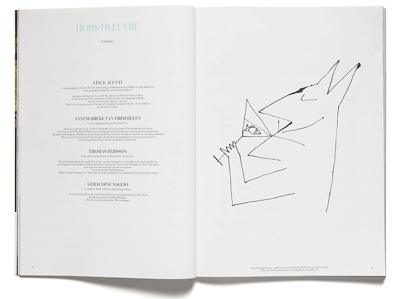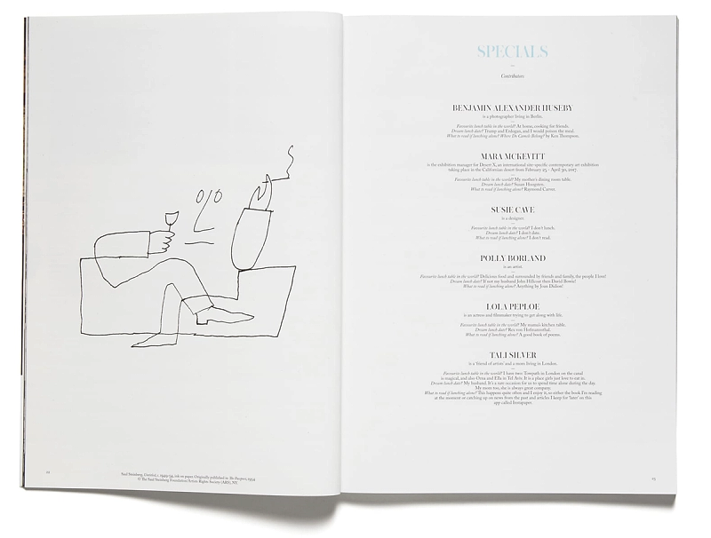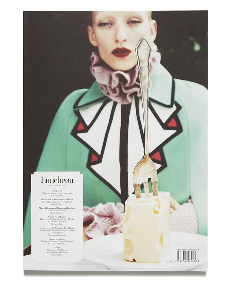 In the second issue of Luncheon Charlie Porter visits Michèle Lamy and Rick Owens at home. Lunch from Hell at the Chateau Marmont gives a glimpse into the world of Hammer horror with Jane and Bill Moseley. Lola Peploe offers a personal portrait of her godfather the filmmaker Bernardo Bertolucci at home in Rome. Charlie Porter speaks with musician Kelsey Lu and Vince Aletti revisits Irving Penn’s early still lifes and House & Garden covers. The issue includes a retrospective on Tessa Traeger, and Suzy Menkes examines Lucie Rie's influence on on designers like Issey Miyake and Jonathan Anderson. Robin Muir writes about life at Château Mouton, with photographs by Peter Schlesinger. A True Wanderer tells the life story of Dame Freya Stark, penned by Caroline Moorehead with Stark’s own photographs. Fresh from the Pastures photographed by Paul Wetherell, styled by Hannes Hetta, Liquid Lunch photographed by Roe Ethridge, styled by Marie Chaix and Stranger than Paradise, photographed by Jack Davison and styled by Mattias Karlsson.